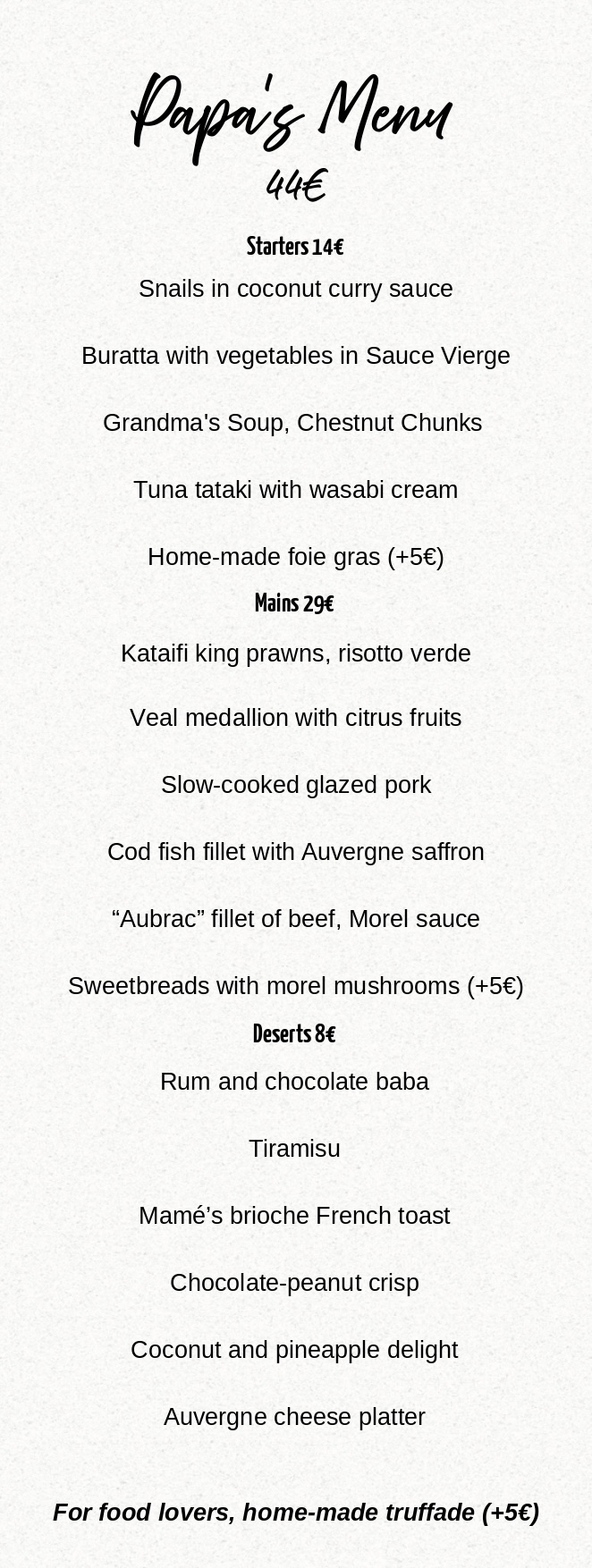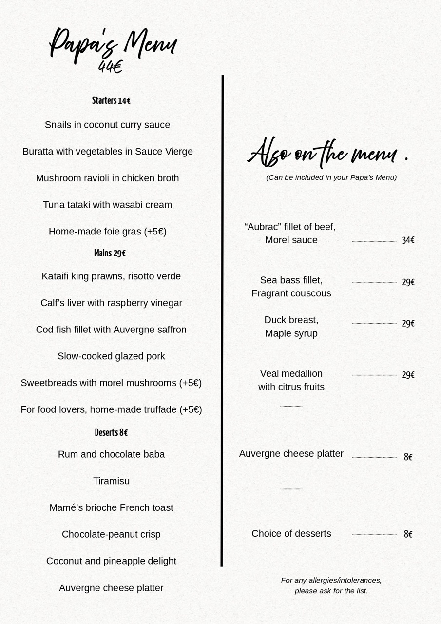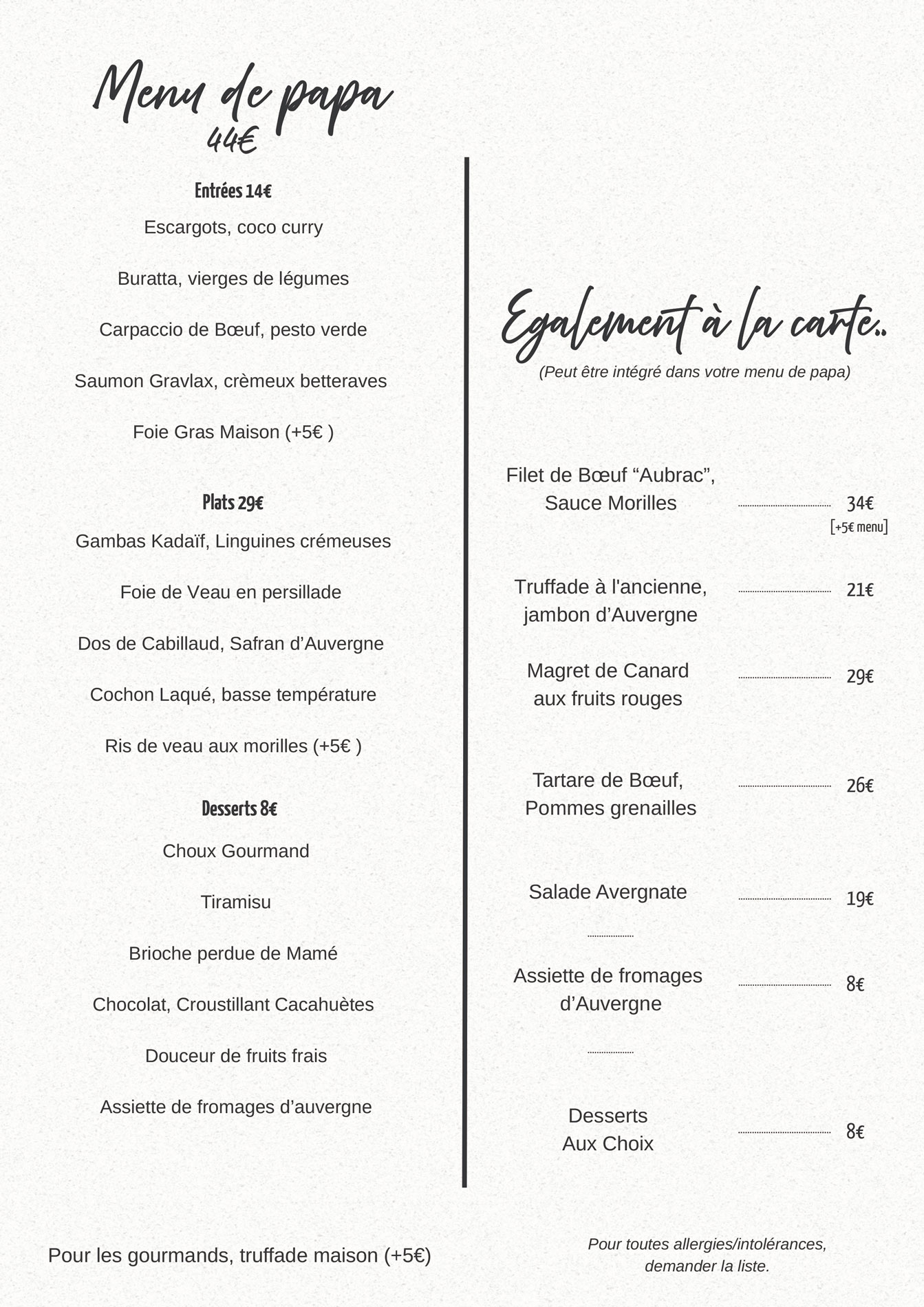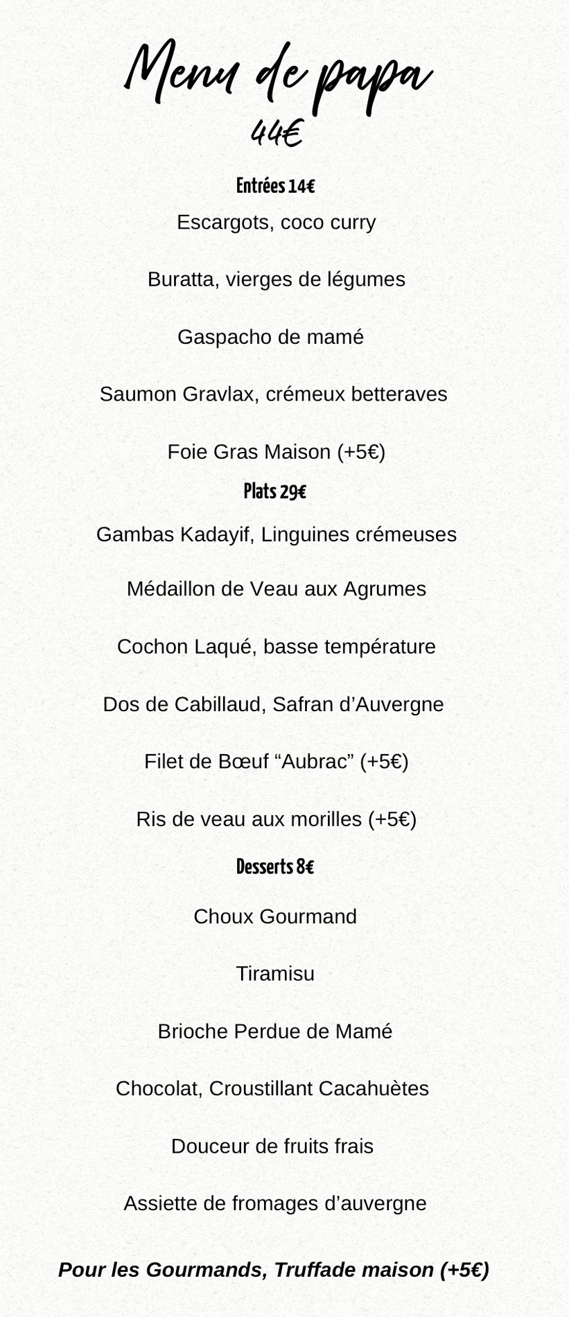 EXCELLENT Basée sur 72 avis Publié sur Damien JULHETrustindex vérifie que la source originale de l'avis est Google. Restaurant trouvé par hasard. Agréablement surpris. Un serveur très sympathique et de bon conseil. Une cuisine excellente. On s'est régalé.Publié sur Lucie TualTrustindex vérifie que la source originale de l'avis est Google. Nous nous sommes régalés avec les menus midi. L'équipe est adorable, aux petits soins ! Je recommande totalement ! 🎉 UN VRAI REGAL 😍Publié sur Rosa CesaraTrustindex vérifie que la source originale de l'avis est Google. Un lieu ravissant avec un style boudoir. Une carte avec du choix et une cuisine qui s’adapte à notre style d’alimentation. C’était un régal! J’ai eu la chance de rencontrer la fille à papa en personne!! Elle a vraiment été au petit soin.Publié sur Carole HoutinTrustindex vérifie que la source originale de l'avis est Google. Nous sommes impatients de revenir dans votre établissement manger de bons dessertsPublié sur Audrey BourrandTrustindex vérifie que la source originale de l'avis est Google. Très bon restaurant !!! Qui est devenu un des mes resto favori... La déco est superbe, le personnel très accueillant. Les serveurs sont de très bon conseils et d'une grande gentillesse. Le papa qui vient "chapoter" tout ça permets de ressentir l'esprit Familial du restaurant qui y règne. Et la cuisine est juste délicieuse !!!! Bravo au chef et à toute l'équipe !Publié sur anne ravelTrustindex vérifie que la source originale de l'avis est Google. Une première expérience le premier jour du confinement . Un repas couvre feu excellent dans un cadre chaleureux . On aime la gentillesse de l équipe le cadre et les plats . On vous encourage à tester cette nouvelle formule qui permet d allier les nouvelles contraintes et le plaisir de sortir . Nous reviendrons avec grand plaisirPublié sur Richard CharbonnierTrustindex vérifie que la source originale de l'avis est Google. Accueil très chaleureux, agencement magnifique, service de qualité et cuisine gourmande je vous recommande cet établissement